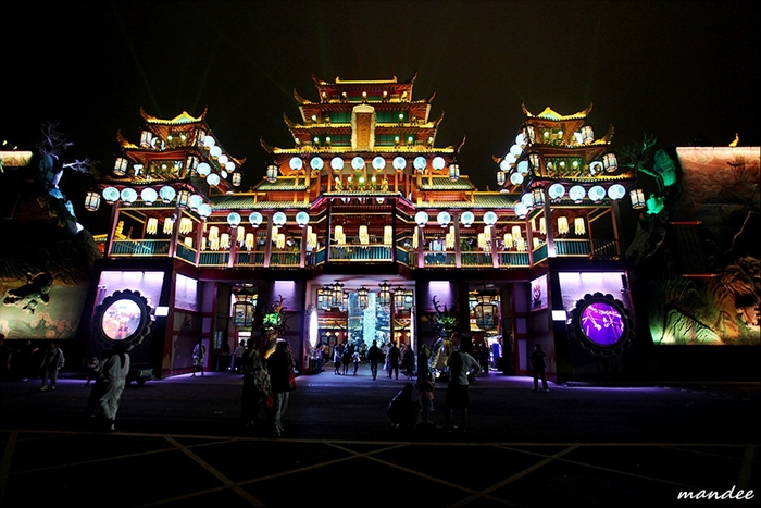 칭다오 명월산해간 불야성은 산해경을 주제로 한 테마거리로 크고 작은 공원과 퍼레이드를 보실 수 있으며, 다양한 오락시설과 간식들도 즐길 수 있습니다