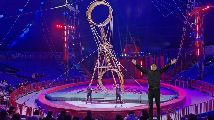 불야성 옆에 서커스 우리나라에서는 볼수 없는 서커스는 중국애서는 왕성히 활종을 보이고 있습니다 특히 공중공에는 손에 담을 쥐고 볼수 있는 아슬아슬한 장면이 많고 두 개의 원으로 만든 공중 회전 곡예는 정말 아슬아슬합니다.