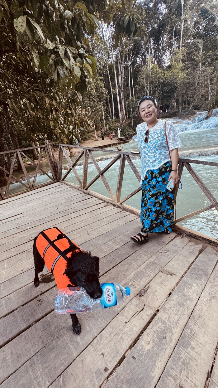 꽝시폭포에서 만난 귀여운 강아지 ㅎㅎ 물병을 던져 달라고 주위를 맴도는 고인물 강아지까지 완벽함