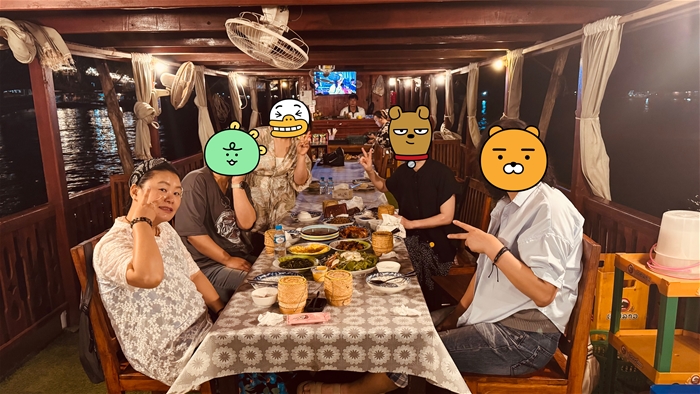 메콩강 위에서 선셋보트을 타고 저녁을 먹었다 너무 맛났다