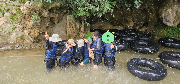 땀쌍동굴 1인용 고무보트가 우리를 기다리고 있었음 이건 정말 무슨 유격훈련 하는 기분