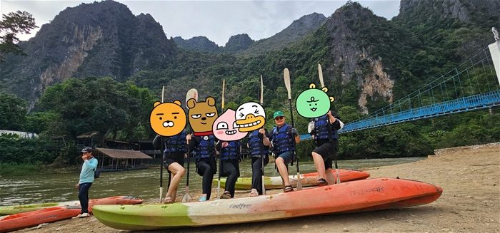 현지에서 도움 주시는 분들이 카약을 같이 타서 우리는 그렇게 힘들지 않았는데