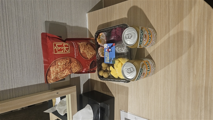 밤 늦게 호텔에 들어갔는데 우리를 맞아 준 월컴 맥주와 과일, 과자