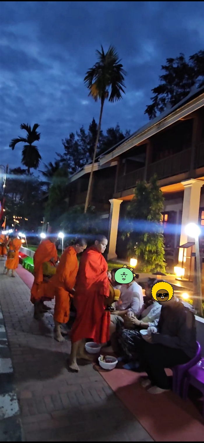 새벽같이 얼어나서 라오스에서 가장 해보고 싶었던 탁발 행렬을 체험했다
