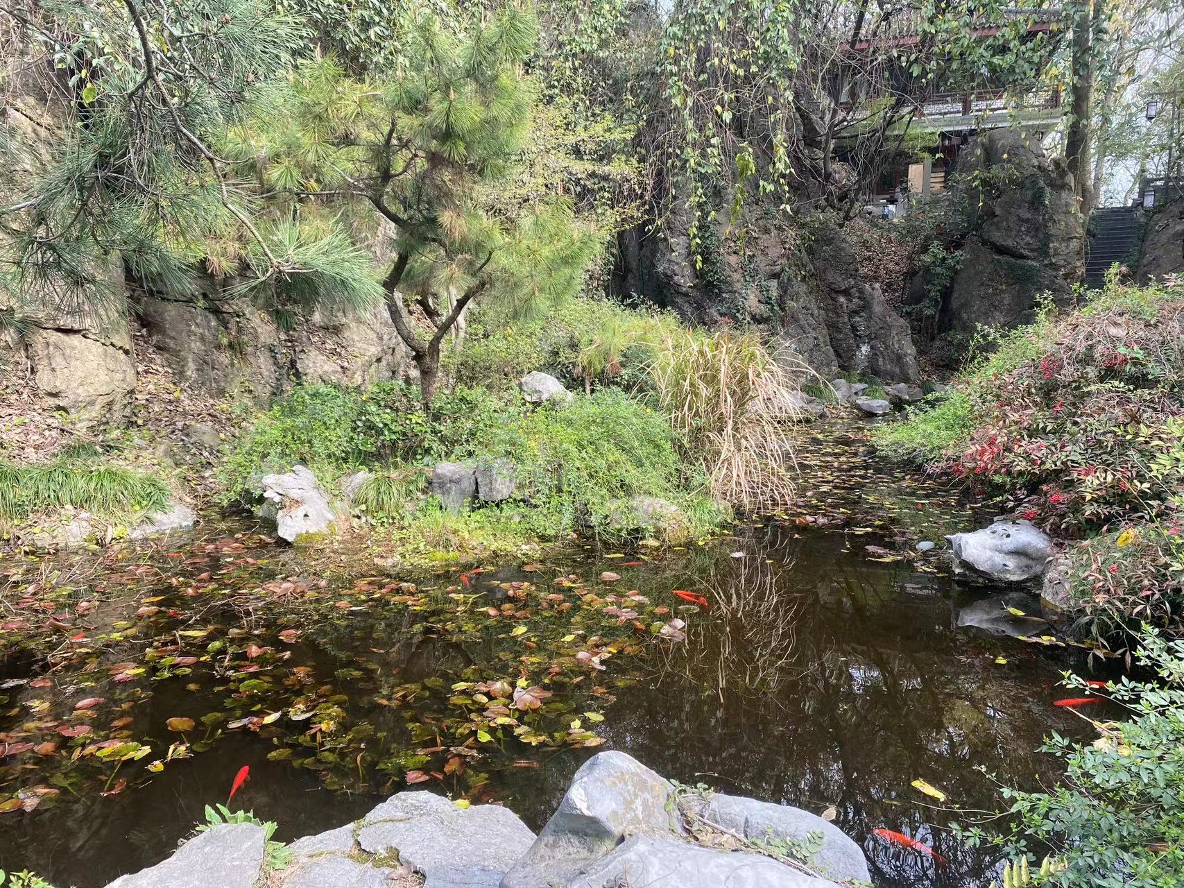 중국에서 가장 아름다운 호수, 서호의 빛나는 10가지 경치. '서호십경'의 하나입니다. 호수의 남서쪽 지점으로 '늦봄 목련 꽃잎이 떨어지는 호숫가에서 한가하게 노니는 붉은 잉어를 바라본다'는 뜻으로 송대의 관료가 이곳에 별장을 지어놓고 연못에서 물고기가 노니는 풍경을 즐겼다는데서 유래되었습니다.