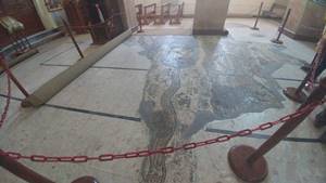 1896년 경에 발굴된 비잔틴시대의 교회 성 조지(St.George) 교회 바닥에서는 550년에 만들어진 성서에 나오는 이스라엘 모자이크 지도가 발견되었는데 이 지도는 현존하는 가장 오래된 성서 모자이크 지도로 유명합니다. 이 지도에는 예루살렘을 중심으로 중근동 지역의 성지와 주요 도시를 200여 만개 이상의 다양한 색상의 돌을 이용하여 16 x 6m짜리 지도를 제작하였는데 일부가 훼손되어 현재는 3분의 1 정도만 남아 있습니다. 지도의 가장 중심점인 위치에 예루살렘이 그대로 남아 있으며 사해, 요단강, 예수님 세례터, 아르논 강, 세렛강, 시내산, 나일강 등이 선명히 남아있어 성서 고고학적으로 매우 중요한 가치를 지닌 것으로 평가되고 있습니다.