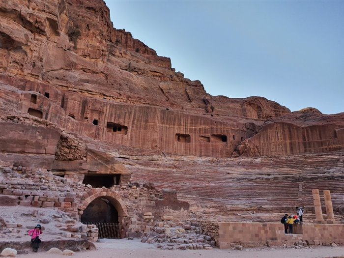 영국의 시인 존 윌리엄 버건이 '영원의 절반만큼 오래된, 장미빛 같은 붉은 도시'라고 노래한 페트라는 나바테아인이 건설한 산악도시입니다. 사막 한가운데에 있는 붉은 사암 덩어리로 이루어진 거대한 바위 틈새에 도시를 건설하여 좁고 깊은 골짜기를 따라 한참을 가면 극장과 온수 목욕탕, 그리고 상수도 시설이 갖추어진 현대 도시 못지않은 도시가 유령처럼 버티고 있습니다. 협소한 통로와 협곡으로 둘러싸인 바위산을 깎아 조성된 페트라의 건물들은 대부분 암벽을 파서 만들어졌습니다.